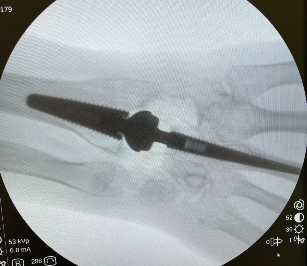 Figura 4 - Artrodesis de articulación interfalángica proximal.